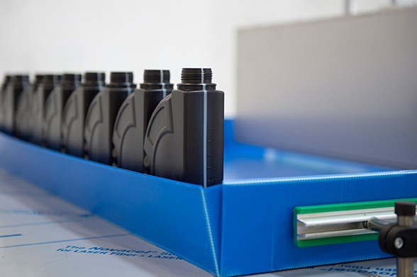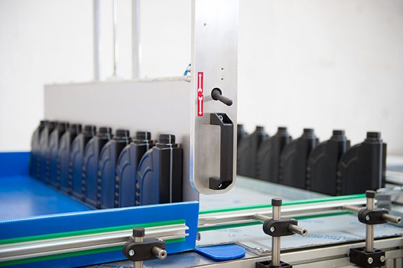 Questo tipo di pallettizzatore a banco trova applicazione anche per raffreddare i contenitori prima di farli cadere nelle scatole che possono essere posizionate alla fine del banco stesso, a terra oppure su nastro trasportatore con conteggio pezzi e cambio scatola.